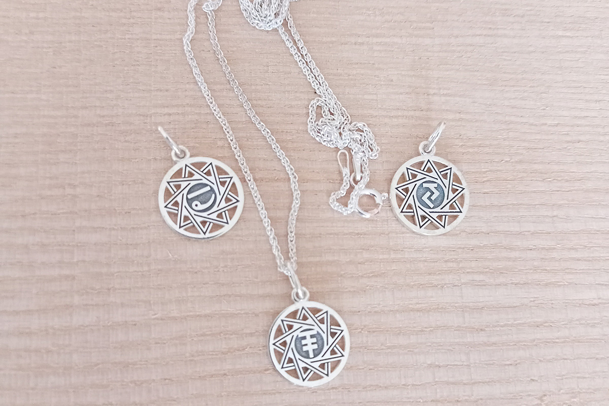 Алатырь с Солнцем (серебро с золотом), 30 мм